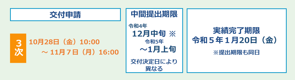 ※3次公募に申請する方は、必ず新しく資料をダウンロードしてご使用いただきますようお願いします。