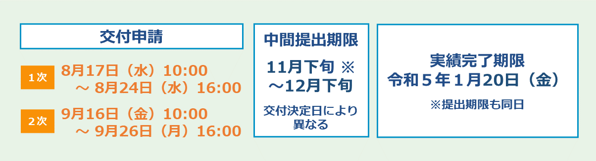 交付決定:令和4年9月中旬より順次通知の予定。