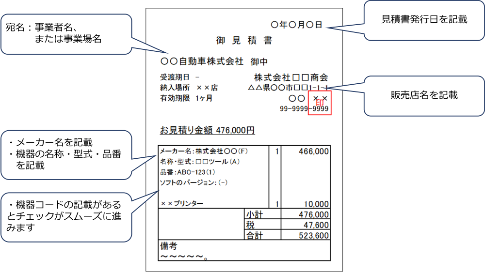 | ② 見積書 ※原則2社以上 | 申請する補助対象機器の見積書 | ||