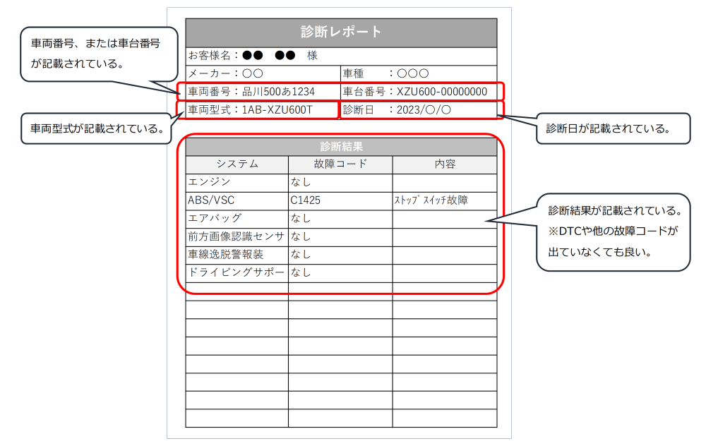 | ③ 診断レポート | スキャンツールから出力したデータ | ||